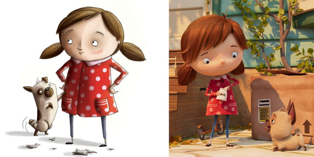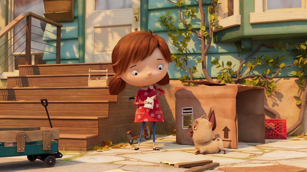 “In those first meetings, we talked about making the (main character’s) mom a stronger presence in the story, and we always knew the girl’s dog would be a huge part of the short,” says Spires. “In the final product, as only animation can do, the animators were really able to grab the personality of the dog and up the impact of his movement. As much as I would love to show funny scenes, such as a dog dropping a toy from his mouth when he sees a squirrel, static images can’t do that.”