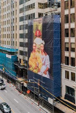 Charlton is using this unique ability of the camera to give authentic representation to Black identity, ethos, and culture. Late last year, Untitled, her 70-ft portrait of a Black woman – her hands on the shoulders of two Black male twins dressed in gleaming tulle with matching pearl necklaces – towered over the financial district. Taking up 3,000 sq. ft. of space, the seven-storey art installation on the façade of a Bay Street building was the centrepiece of ArtworxTO, a celebration of Toronto’s Year of Public Art 2021-22. The three Black faces on the exhibit – majestic, ethereal and with the direct gaze that characterizes Charlton’s portraits – were larger than life, visible and demanding attention in the heart of Toronto.