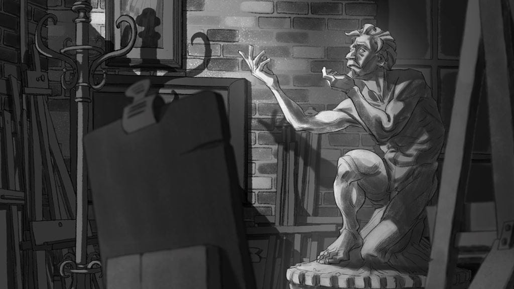 The result is Neyestani’s celebrated short film ed about a figure drawing model who truly comes to life when he steps on the stage. (A still from the film appears above.) “I remember my first figure drawing class – the atmosphere and the passion of teacher Mark Thurman,” recalls Neyestani. “I instantly fell in love with the craft and it became a highlight of my time at Sheridan.”