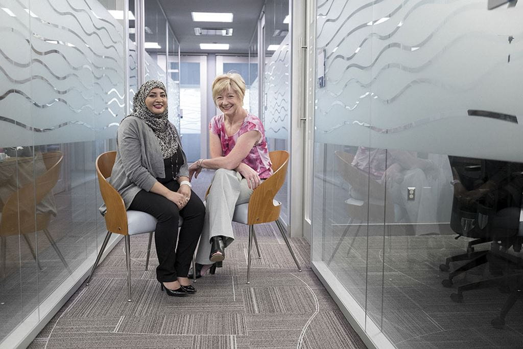 Pictured at top of page: Sabrina Lakhani (left) and Karyn Carty. Not pictured: Farah Almilli. Photo by Sheridan alumnus Jonathan Bielaski.