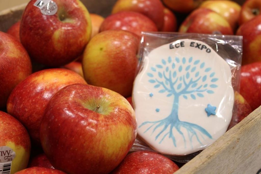 Pictured at top of page: Apples and cookies that were distributed to graduating students at past, in-person ECE Expo events at Sheridan.