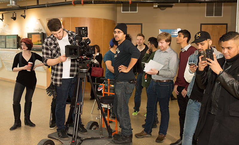 Third-year Sheridan Advanced Advertising and Marketing Communications – Management students recently completed a real-world learning experience, producing two videos for Awake Chocolates and Reko Pizelle Cookies as part of an Advanced Creative Development course. The 62 students, under the guidance of Professor Iryna Molodecky, found out what it’s like to produce a commercial with real clients and a production house.
