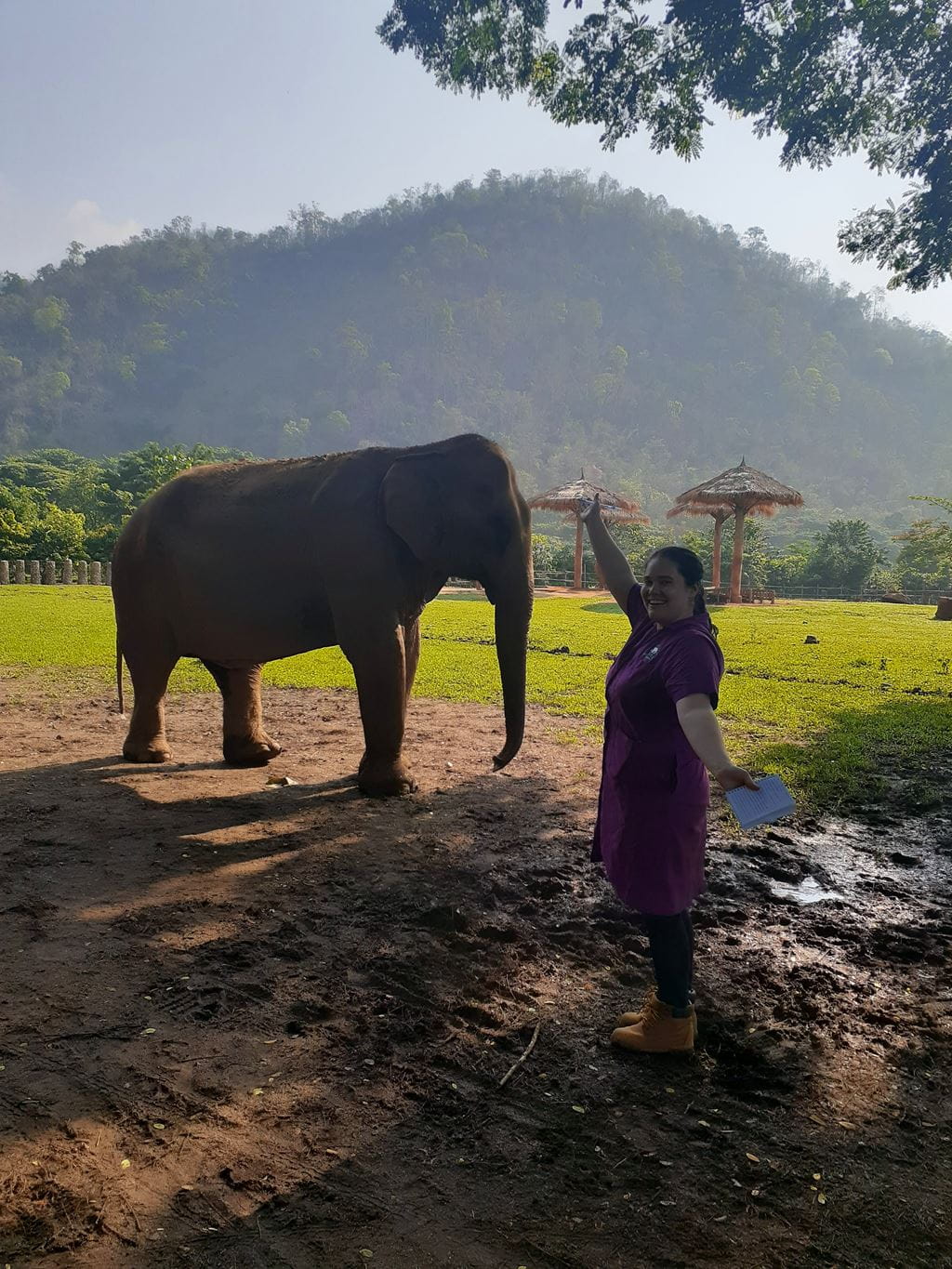 As part of her internship, DiCarlo worked in the Elephant Nature Park, an elephant sanctuary in Thailand, an hour’s drive from the Chiang Mai International Airport. “The sanctuary had 117 elephants, and only one of them had been born there. A lot of these elephants came from the logging industry, circuses and even riding camps, and had very heartbreaking stories,” she says.