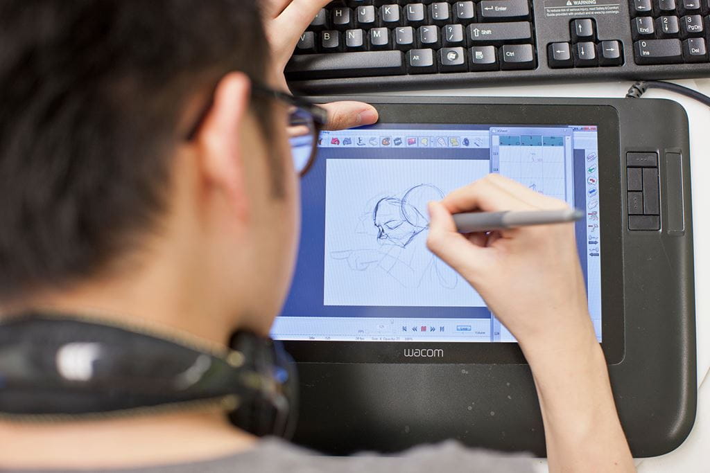 Pictured at top of page: Sheridan Animation student drawing on a tablet.