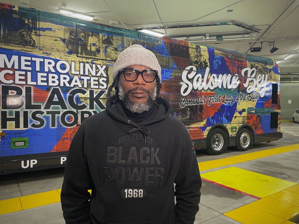 Banner photo: Mark Stoddart (Illustration’92), Sheridan graduate and professor in the Faculty of Animation, Arts & Design, with the special edition GO bus that carries his design featuring Canada’s first lady of the blues, Salome Bey, in celebration of Black History Month.