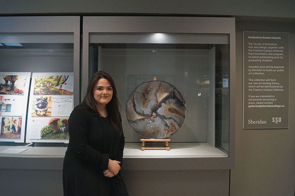 Pictured at top of page: Sheridan alumna Chelsea Ryan, one of the winners of this year’s Graduating Student Awards, with her work Rhapsody II.