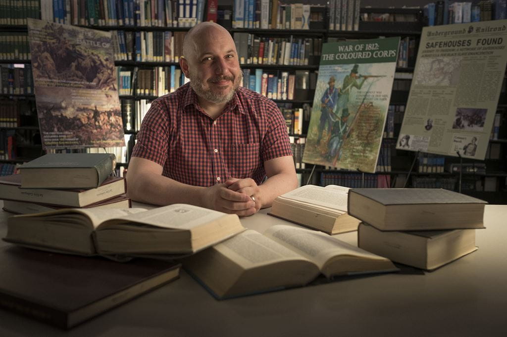 Pictured at top of page: Dr. Christian Knudsen in the Davis Campus Library in Brampton. Photo by Sheridan Photography Alumnus Jonathan Bielaski