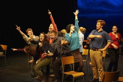 That was certainly the case with the CMTP-incubated Prom Queen – the story of Marc Hall, the Toronto teen who fought for and won the right to bring his boyfriend to his Catholic high school prom – a musical that has since experienced its professional premiere at the Segal Centre in Montreal in 2016. It was similarly the case with the Theory of Relativity, a musical that has been licensed by Music Theatre International, which explores connections to friends, family and community as young people are on the cusp of going out into the world after college or university.