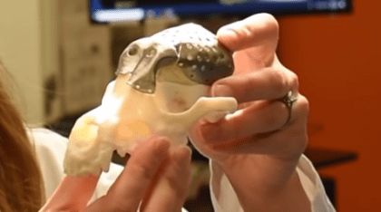 In preparation for the surgery, Dr. John Phillips, a research lead at Sheridan’s CAMDT, printed a 3D plastic model of Patches’ skull that allowed surgeons at Cornell University and the University of Guelph to prepare for the procedure – the first of its kind in North America. Dr. Phillips was also able to use Patches’ medical imaging data to design and 3D print a custom-fit steel plate that was implanted after the tumor was removed.