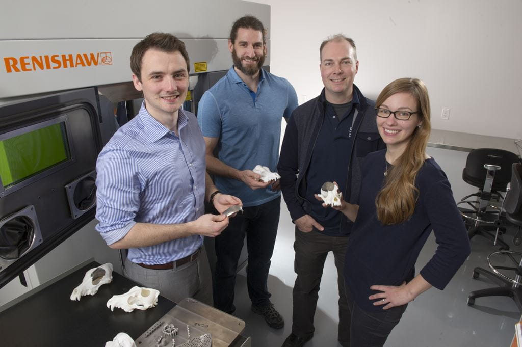 A nine-year-old dachshund from Pennsylvania named Patches had a brain tumour the size of an orange protruding from her forehead. Veterinary staff overseeing the surgery projected that removing it would leave a hole in 70 percent of her skull. In preparation for the surgery, Dr. John Phillips printed a 3D plastic model of Patches’ skull at CAMDT that allowed surgeons at Cornell University and the University of Guelph to prepare for the procedure – the first of its kind in North America. Dr. Phillips was also able to use Patches’ medical imaging data to design and 3D print a custom-fit titanium skull plate that was implanted after the tumour was removed.