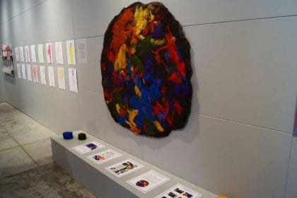 The rug was one of the works of art by the children – ages 18 months to four years – made out of donated materials from the Faculty of Animation, Art and Design (FAAD), and proudly displayed in a two-week exhibition at the Sheridan Gallery in Oakville.