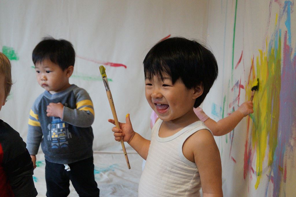 Pictured at top of page: Painting activity at the Sheridan Child Care Centre. Photo by Keiko Kataoka.
