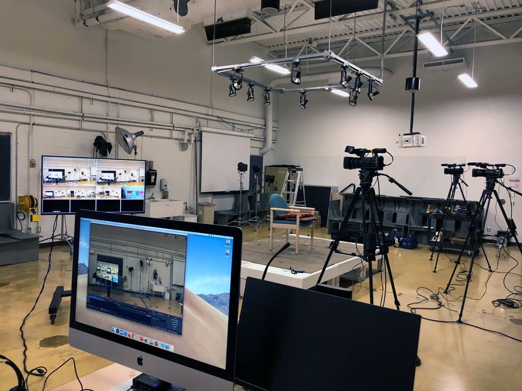 In order to do that, the duo concluded after speaking with Illustration professor Kathryn Chorney and several other faculty members, they needed to deliver multiple viewpoints that would help students observe their drawing subjects from a variety of angles — much like they would in class. "In a physical space, you're always seeing things peripherally. Your head moves and turns, you move forward or backward, you may lean into something or look around the side," notes Donna Braggins, Associate Dean of Design, Illustration and Photography in the Faculty of Animation, Arts and Design. "The two-story stands in our studios are also very important to illustrators because they allow them to observe things at different levels, which impacts how they perceive things."