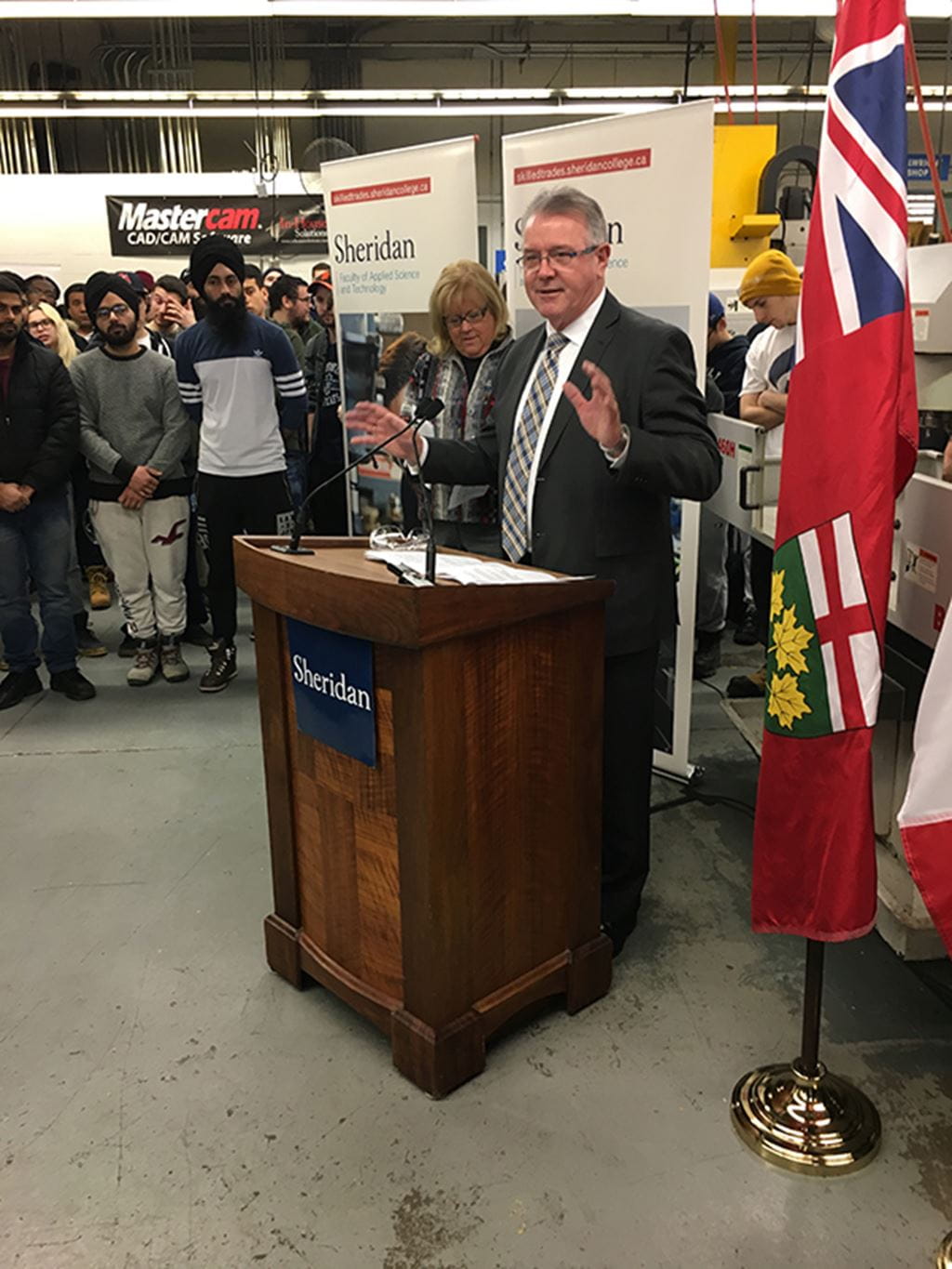 The Hon. Kevin Flynn, Minister of Labour and MPP for Oakville, visited Sheridan’s Skilled Trades Centre today to announce $282,300 in new funding for Sheridan’s pre-apprenticeship training programs, including Industrial Mechanic Millwright, General Machinist and Tool and Die Maker.