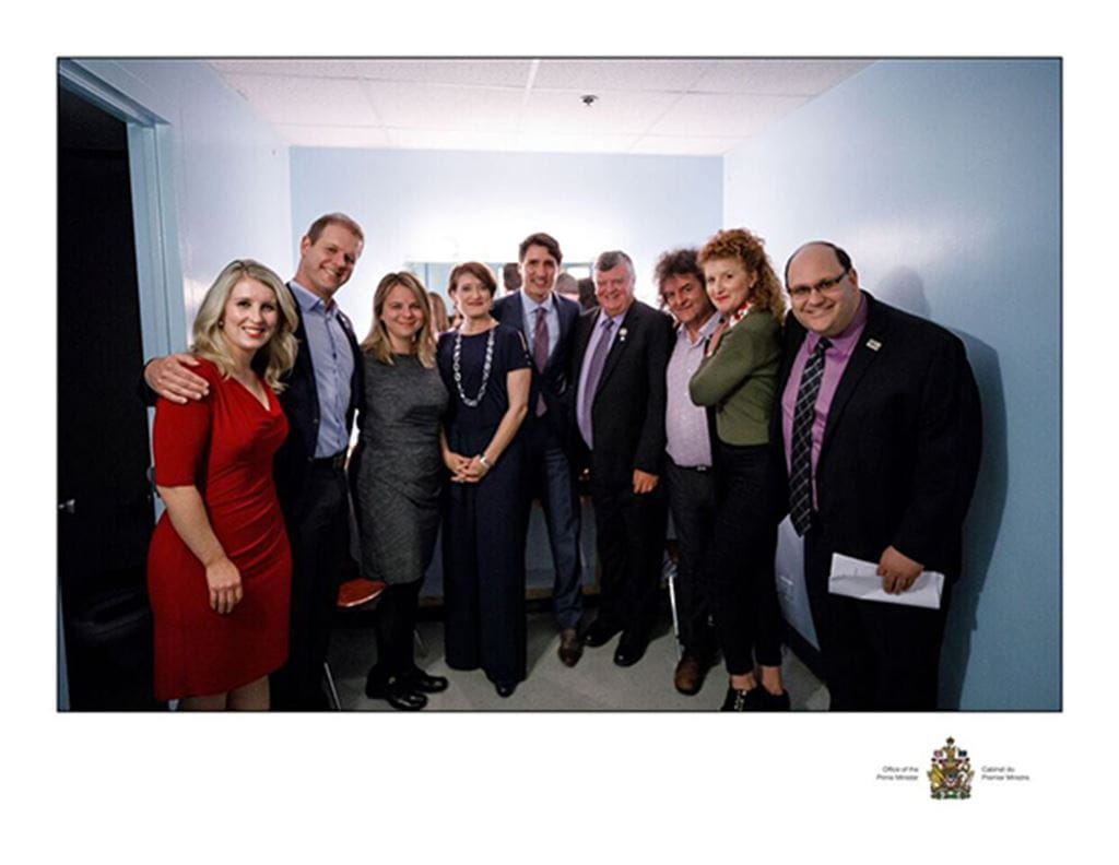 Pictured at top of page (from left to right): Sarah Loveys, David Hein, Irene Sankoff, Petrina Bromley, The Right Honourable Justin Trudeau, Claude Elliott, Bob Foster, Eliza Jane Scott, Michael Rubinoff. Photo provided by the Office of the Prime Minister.