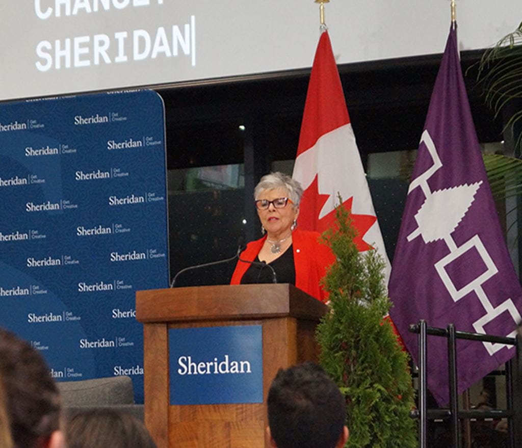 Photo at top of page: Roberta Jamieson, Indigenous leader, advocate, Officer of the Order of Canada and former Ombudswoman of Ontario at Sheridan's Hazel McCallion Campus.
