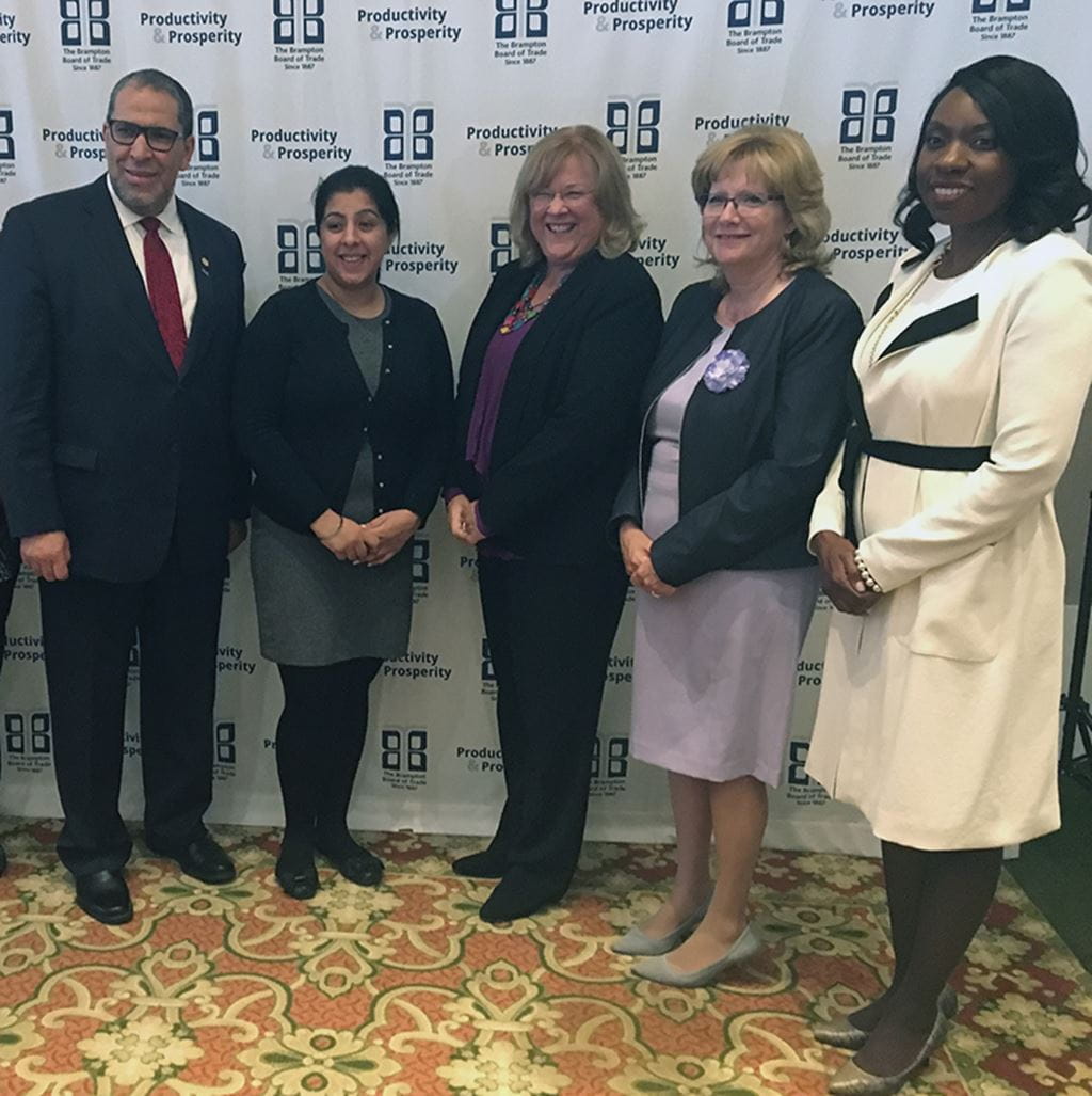 Pictured top right: (Left to right): Dr. Mohamed Lachemi, President, Ryerson University, The Hon. Harinder Malhi, Minister of the Status of Women, Dr. Mary Preece, President and Vice Chancellor, Sheridan, Linda Jeffrey, Mayor, City of Brampton, The Hon. Mitzie Hunter, Minister of Advanced Education and Skills Development.