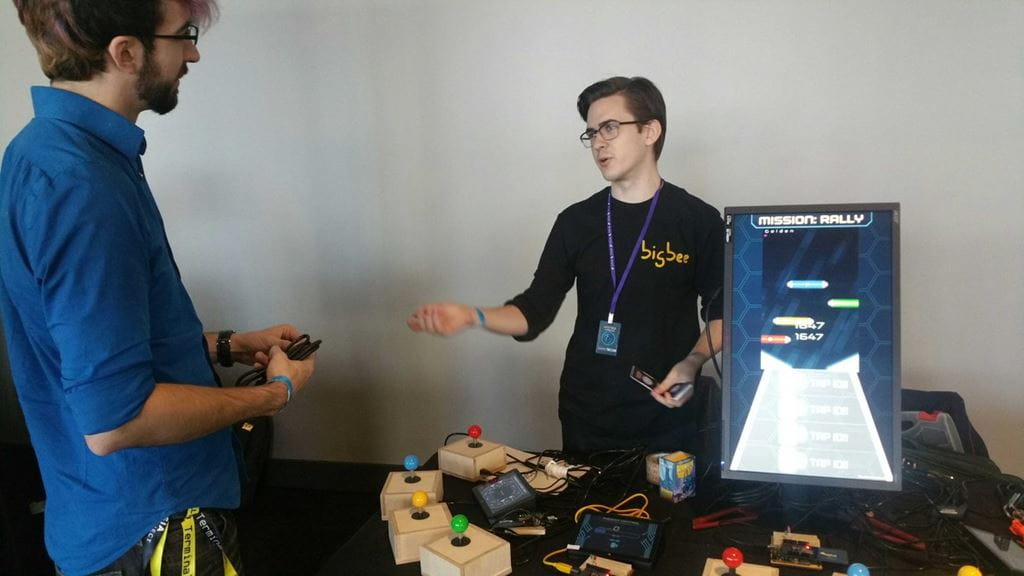 At GDC’s premier student event – the Intel University Game Showcase (IUGS) – Sheridan was one of only two post secondary institutions from outside of the United States represented. Participating institutions included the likes of New York University, Texas A&M and Carnegie Mellon University. A fourth-year Sheridan team called bigbee games that includes Vincent Gutauskas, Paul Williams, Keita Lorente and Annie Wang was one of 14 selected to present their work on stage to an audience and panel of judges.