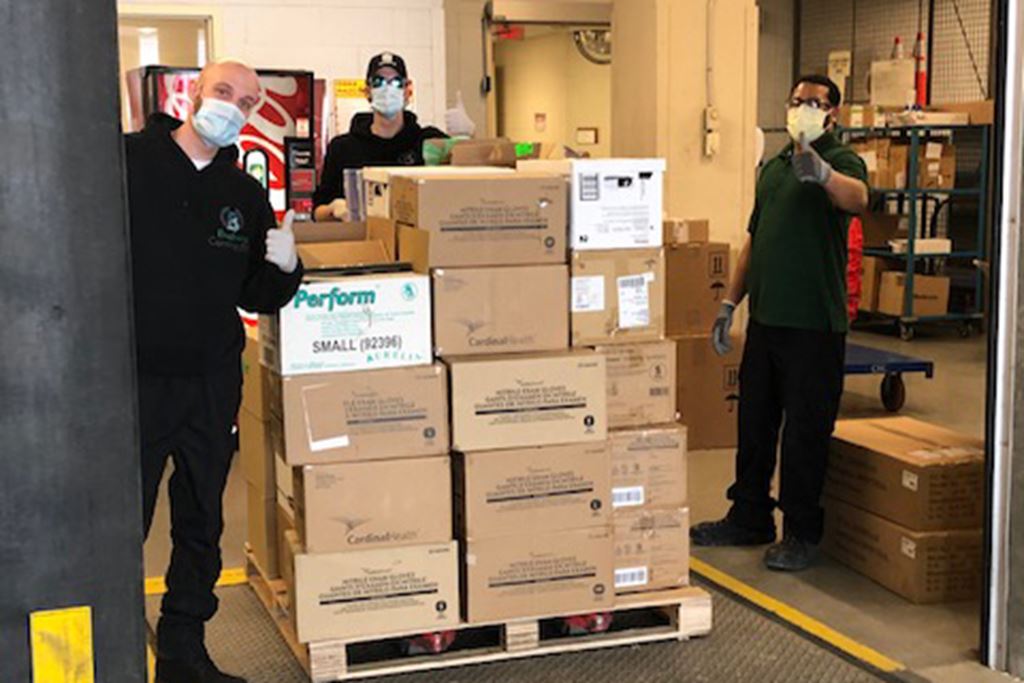 Pictured top: Sheridan staff preparing donated supplies to be shipped to local hospitals.
