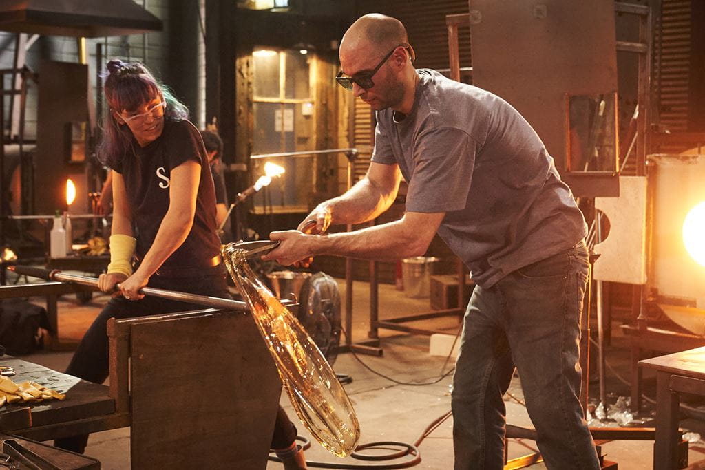 Sheridan helped bring the first season of Blown Away to the small screen in February 2019. Vanderstukken served as the series consultant, and Sheridan loaned over $10,000 worth of equipment to outfit the show’s Hamilton-based facility (what is now North America’s largest hot shop). In addition, students and alumni from Sheridan’s Bachelor of Craft and Design (Glass) helped build the hot shop and were featured heavily in the first season.